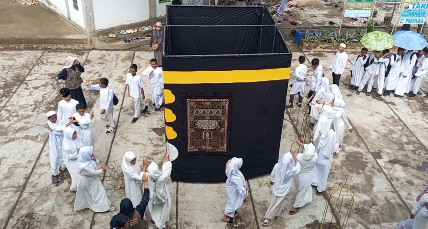 Dengan mengenakan pakaian ihram putih bagi putra dan busana muslimah sederhana bagi putri, para siswa terlihat bersemangat mengikuti setiap arahan pembimbing. Tidak hanya sekadar praktik, kegiatan ini juga disertai penjelasan makna dan hikmah dari setiap rukun dan wajib haji, sehingga anak-anak dapat meresapi nilai spiritual yang terkandung di dalamnya.